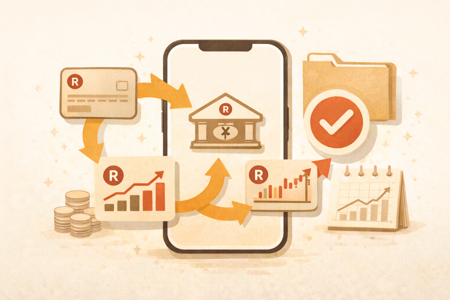 「支払い(カード)→ 入金(銀行)→ 投資(証券)」